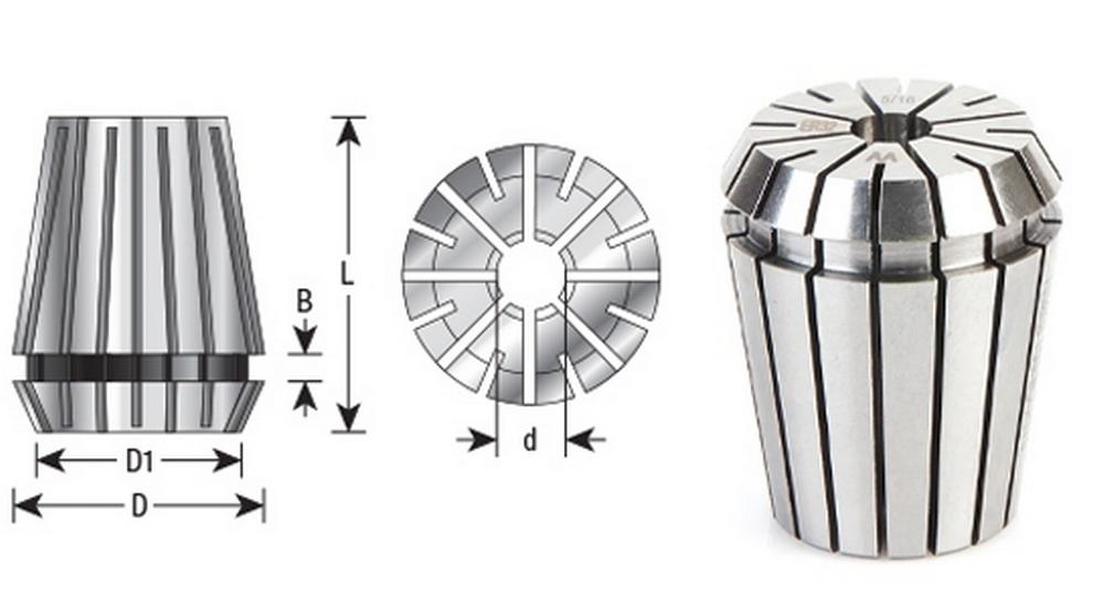 Offering a large selection of Metric and Inches HIGH PRECISION CNC Spring Collets in ER and RDO Styles. All spring collets are inspected for quality & 100% accuracy. Standard 0.0004" T.I.R.